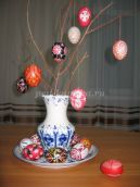 Мастерица: Писанки пишут уже более четырёх тысяч лет. Писали их женщины после работы, когда в доме не было чужих людей, и если день прошёл без ссор и огорчений, пели песни, рассказывали друг другу сказки да легенды. Яйцо – это символ пробуждения природы, символ жизни. Люди дарят его друг другу в знак приветствия и поздравления, прощения обид с пожеланиями добра, здоровья богатства. Существовала одна легенда, будто бы жил-был в глухом ущелье Злой Дух – Пекун-щез-бы. Радовался он войнам, ссорам и горю людскому. И страшно злился, если слышал весёлые песни, смех. И терял он свою злую силу, если узнавал, что пишут люди и дарят друг другу писанки. Сеял он вражду среди людей и мечтал о конце Света.… Такая вот была легенда. А вы какие знаете приметы, обряды с яйцом?